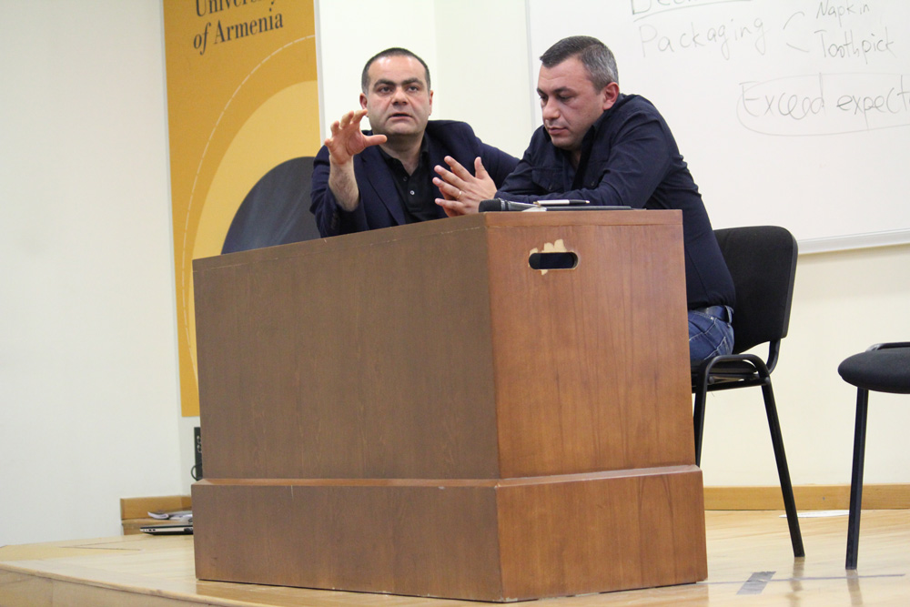 <p>Ս.թ. դեկտեմբերի 8-ին ԿԱՐԱՍ ազգային սննդի ցանցի համասեփականատերեր Տիգրան Յուզբաշյանն ու Աշոտ Հարությունյանը հանդիպում ունեցան Հայաստանի ամերիկյան համալսարանի (ՀԱՀ) ուսանողների հետ՝ ներկայացնելով Կարաս բրենդի կոնցեպտը, ստեղծման պատմությունը, անցած ճանապարհի դժվարությունները ու հաղթահարման ուղիները: Հանդիպման արդյունքում կարող ենք նշել, որ քննարկումն անցավ հետևյալ թեմայի շուրջ՝ “Ինչպես դառնալ հաղթող մրցակցային շուկայում ու մնալ այդպիսին ավելի քան 11 տարի”:<br>Ավելի քան 2 ժամ տևած ինտերակտիվ հանդիպմանը ուսանողները հնարավորություն ունեցան տեղեկանալու Կարաս-ի անցած ուղուց, վարչակազմակերպչական կառուցվածքից, &nbsp;«Վերակառուցման և Զարգացման Եվրոպական Բանկ»-ի հետ համագործակցության արդյունքներից, ինչպես նաև նոր շուկաներ գրավելու որոշումներից: Հանդիպման սկզբում նշվեց, որ ամենահետաքրքիր, բարդ հարցերի հեղինակները կստանան Կարաս-ի նվեր քարտեր, և ուսանողներից յուրաքանչյուրը ջանք չէր խնայում հաղթող ճանաչվելու համար: Հարցերը վերաբերում էին Կարաս-ի՝ շուկայի խոշորագույն առաքման ծառայությանը, առողջ մրցակցությանը, առաջնորդության հմտություններին, ինչպես նաև՝ որքանով է բարդ կամ միգուցե հեշտ մանկության ընկերներին աշխատել իրար հետ: Այս հարցին Տ. Յուզբաշյանը պատասխանեց, որ Ա. Հարությունյանի հետ միայն մեկ իր չեն կարողանում կիսել, այն է՝ կրակայրիչը:)</p>