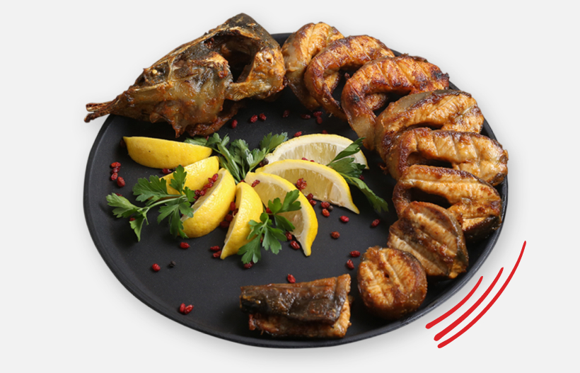 Sterlet (whole) 9-11 pcs, lavash, 1 lemon.