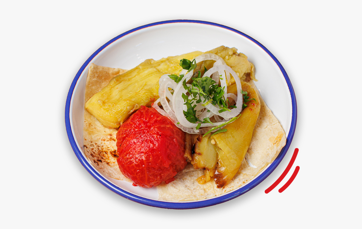 1 помидор, 1 баклажан, 1 сладкий перец + зелень, 1 маленький лаваш (нарезанный или целый)